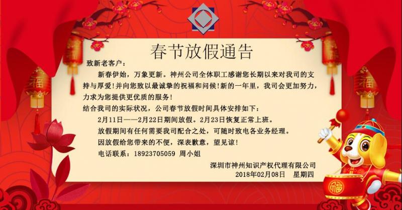 為歡度中華民族的傳統佳節,我公司經研究決定,對2018年春節放假做以下安排: